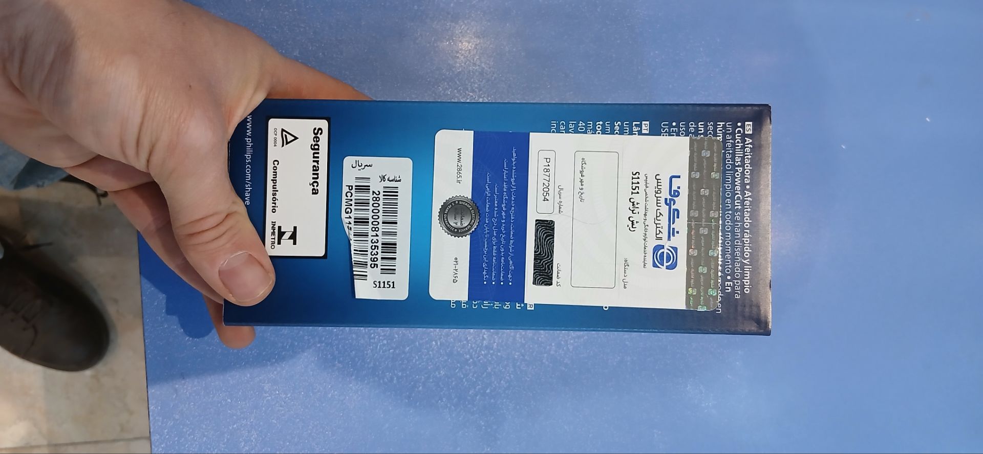 ریش تراش S1151 «فیلیپس» (Philips) تیغه های ComfortCut Blades با رویه صیقلی به آسانی روی پوست لغزیده و موهای صورت را هم سطح با پوست اصلاح می نمایند. قابلیت اصلاح به صورت خشک و مرطوب. سری با قابلیت چرخش در 3 جهت مختلف بر روی تمام پستی و بلندی های پوست منطبق می گردد. شستشوی آسان فقط با یک کلید، فقط کافیست مخزن را باز کرده و آن را زیر شیر آب بشویید. باطری NiMH امکان 40 دقیقه استفاده (13 بار اصلاح) بدون سیم پس از 8 ساعت شارژ را فراهم می آورد. دستگیره لاستیکی ضد لغزش، نگهداری دستگاه را حین استفاده در محیط های مرطوب هم آسان و مطمئن می سازد. دارای گواهی استاندارد IPX7 که در برابر آب، تا عمق 1 متر به مدت 30 دقیقه مقاوم است. نمایشگر باتری، خالی بودن، کم بودن و در حال شارژ بودن باتری را نمایش می دهد. قابلیت شارژ ماشین اصلاح از طریق درگاه USB. لازم به ذکر است بسته بندی دستگاه فقط حاوی سیم شارژ می باشد و شامل آداپتور نمی باشد. تیغه های مدل SH30. بهترین زمان تعویض تیغه ها 2 سال بعد از اولین استفاده. 27 تیغه خودتیزشونده با سرعت 55000 برش مو در دقیقه. دارای درپوش محافظ تیغه. 2 سال گارانتی. ساخت کشور اندونزی.